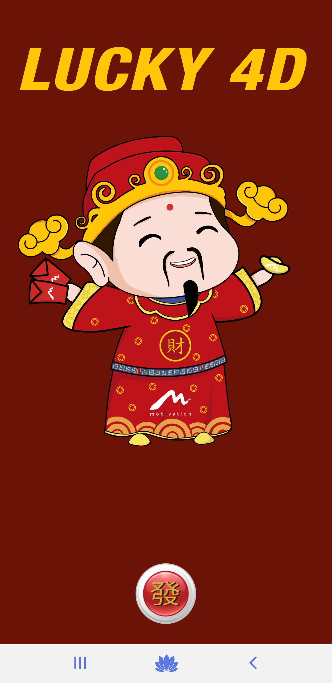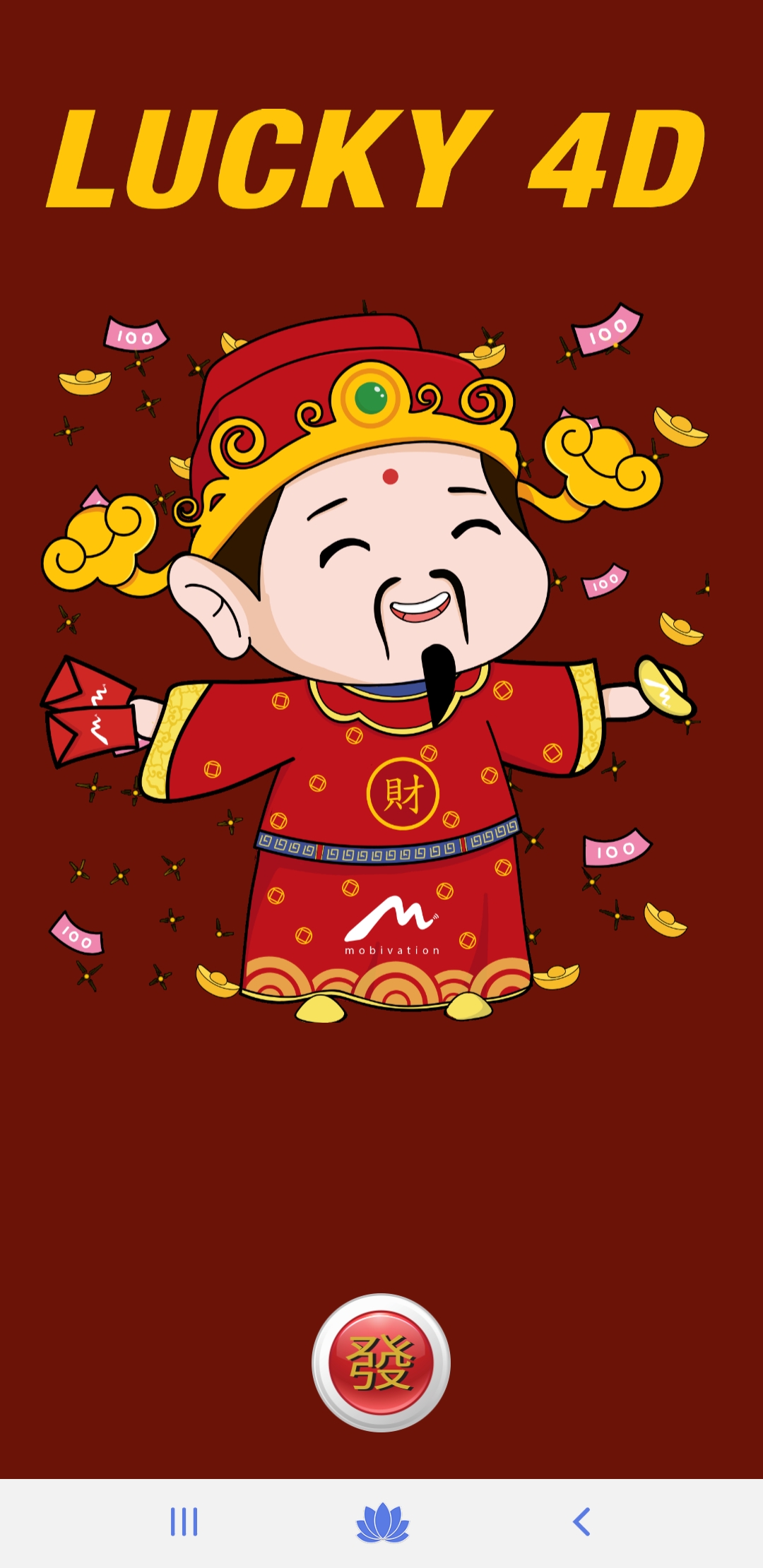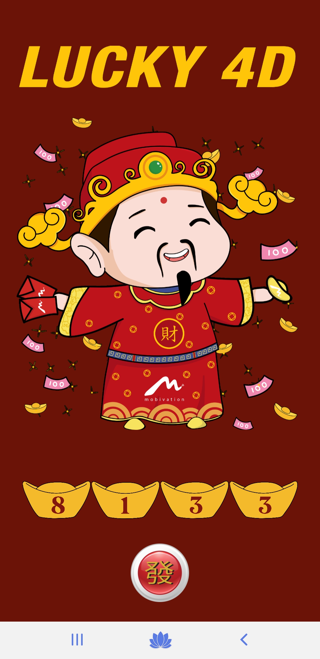 Lucky 4D is a fun and interesting 4D generator application. Press the "Huat" button to generate a Lucky 4D number. Hope you can win some money with the Lucky 4D app.